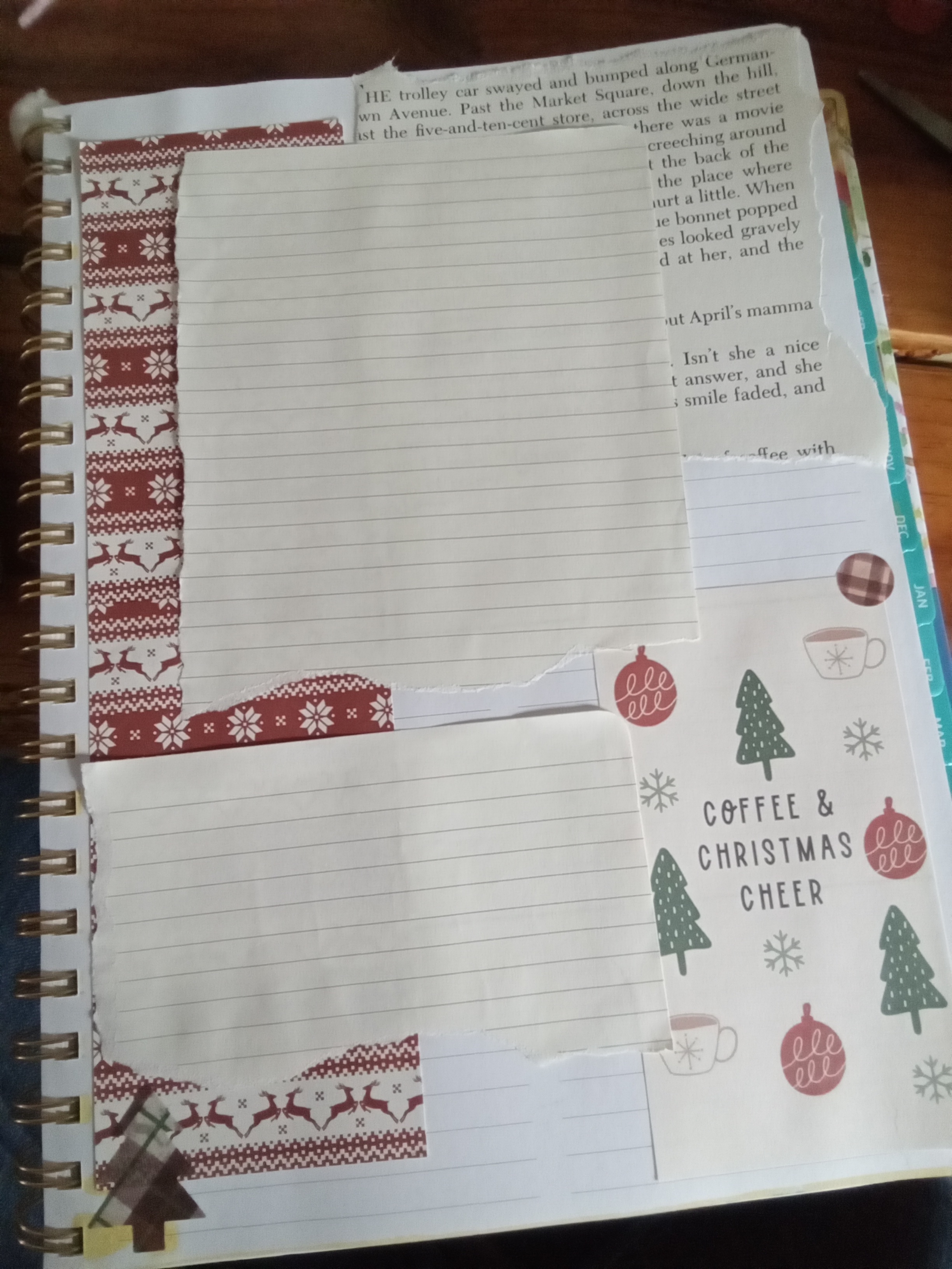Finally, I have several pages decorated for the purpose of journaling. For collecting pictures, I take. For lists of the best memories, best moments. For the best gifts, both physical and not. Because those are the things I’ll treasure in the years to come. Not the food, which will be gone in a flash. Not the things we buy each other. But the memories of loved ones enjoying time together making the darkest days of the year the brightest.